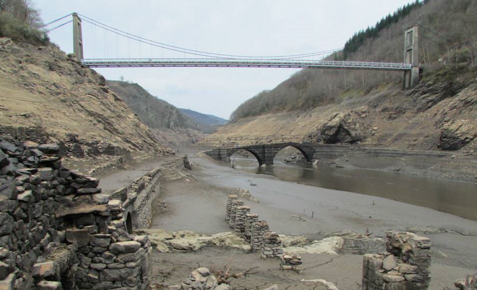 Pour la journée du vendredi 4 juillet 2014 au Festival du Tatouage, cap, tout d’abord, sur le pont de Treboul, star de la journée : construit dans les années 1930, ce pont enjambe la Truyère et, surtout, un vieux pont en pierre datant du 14e siècle et classé monument historique ! « Oh, on le verra l’été prochain », se rassurent déjà quelques-uns. Halte-là ! Je préfère vous prévenir : c’est justement en 2014 qu’aura lieu la vidange des eaux le recouvrant ! Autrement dit : ratez-le maintenant et vous aurez à vous languir plusieurs décennies avant d’apercevoir à nouveau ce vestige de l’histoire cantalienne…
