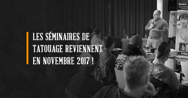 Pour la 1ère fois, l’Américain allait tatouer sur le sol français, et sa confrontation avec le jeune prodige clermontois nous a donné envie ; ainsi est née l’idée d’un séminaire où les deux artistes pourraient exposer théorie et technique, conseils et secrets, recommandations et anecdotes, pour aider chaque professionnel à progresser dans sa pratique du tattoo et sa maîtrise du dermographe.