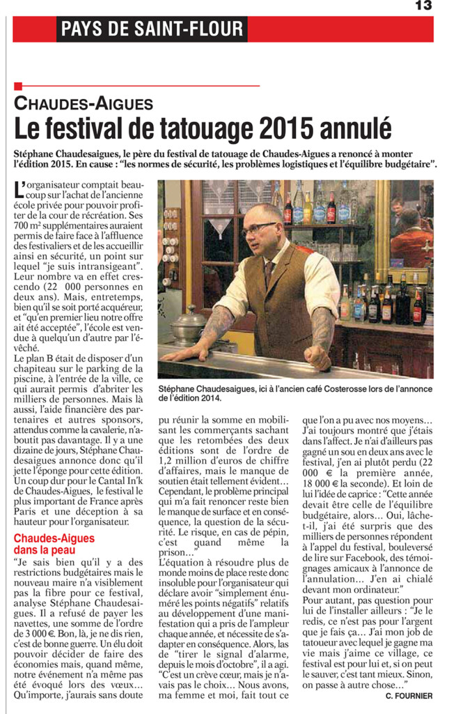 le journal l’Union revient à son tour sur le report du Cantal In’k 3.