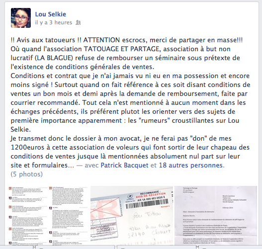 Pourquoi par exemple avoir mis une conversation qui s’était déroulée en message privée en enlevant les phrases qui pouvait embêter ou porter préjudice à Melle Lou Selkie?