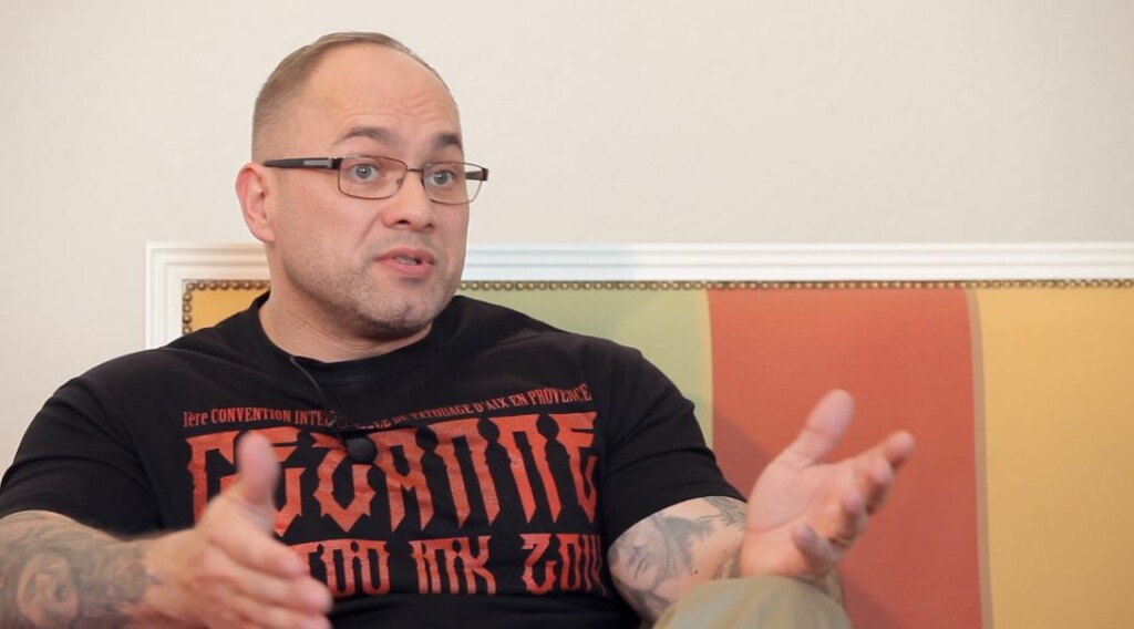 Je m’attarde (un peu trop, diront certains ; personnellement, je pense que le sujet mérite bien plus que 12 minutes) sur le statut du tatoueur et l’avenir de la profession en France. Je m’exprime sur nos actions menées contre l’interdiction des encres couleurs en 2013 et sur les querelles alimentées contre le SNAT, syndicat de tatouage. Je reviens sur la façon de former de façon pérenne des apprentis tatoueurs en France, et sur la manière la plus juste de leur transmettre notre savoir. Je parle également du CAP et autres mots en trois lettres, désignés comme pestiférés par le Syndicat national des artistes tatoueurs.