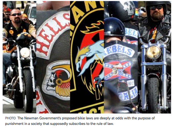 Légende de la photo : Les propositions de loi contre les gangs de motards formulées par le gouvernement Newman sont en contradiction radicale avec les principes d’une société se réclamant de l’état de droit.