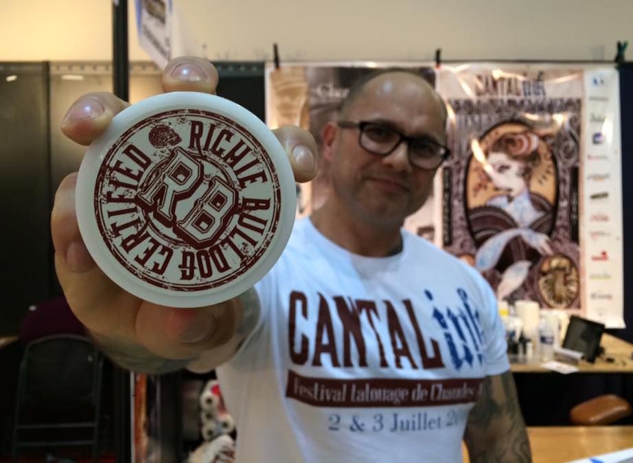 Quelle ne fut pas ma joie lorsqu’entre deux échanges au Cézanne Tattoo Ink 2015, Richie Bull m’a offert d’apposer mon nom à son entreprise. Quelques jours après m’avoir remis son badge, l’Américain postait, sur sa page Facebook :