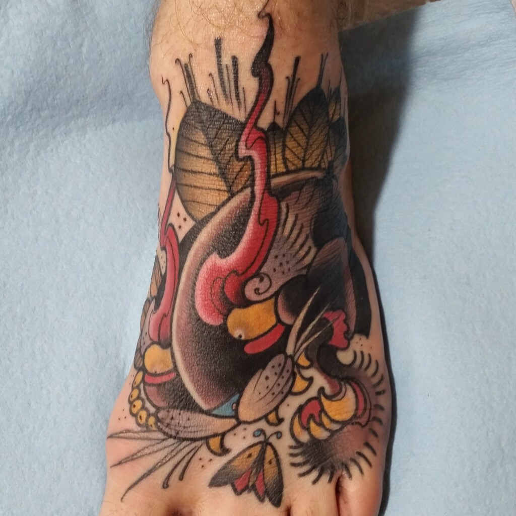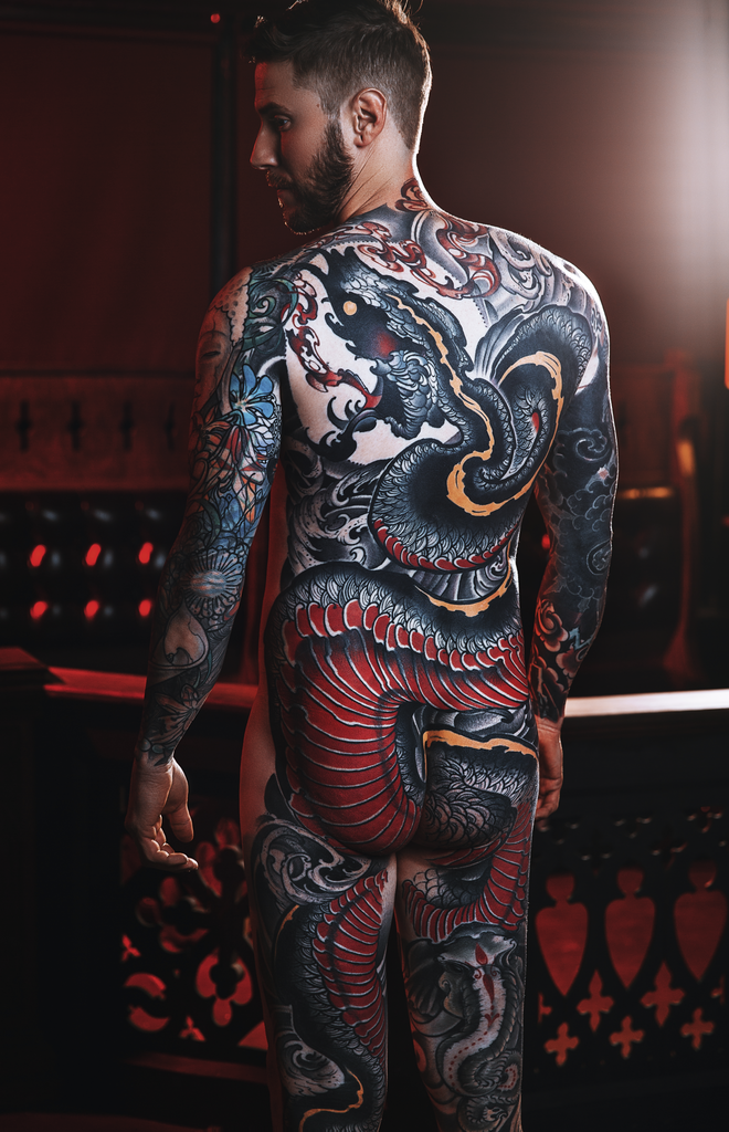 Tous deux born and raised au pays de l’Oncle Sam, Dave Koenig et Joshua Carlton ont compté parmi les ambassadeurs du tattoo made in USA au Cantal Ink 2017. Quand le créneau du 1er est l’encrage japonisant teinté d’Art nouveau et d’Americana, le 2nd, lui, donne dans le réalisme tirant vers l’épouvante et le tatouage pour public averti. 2 écoles pour 2 immenses artistes.