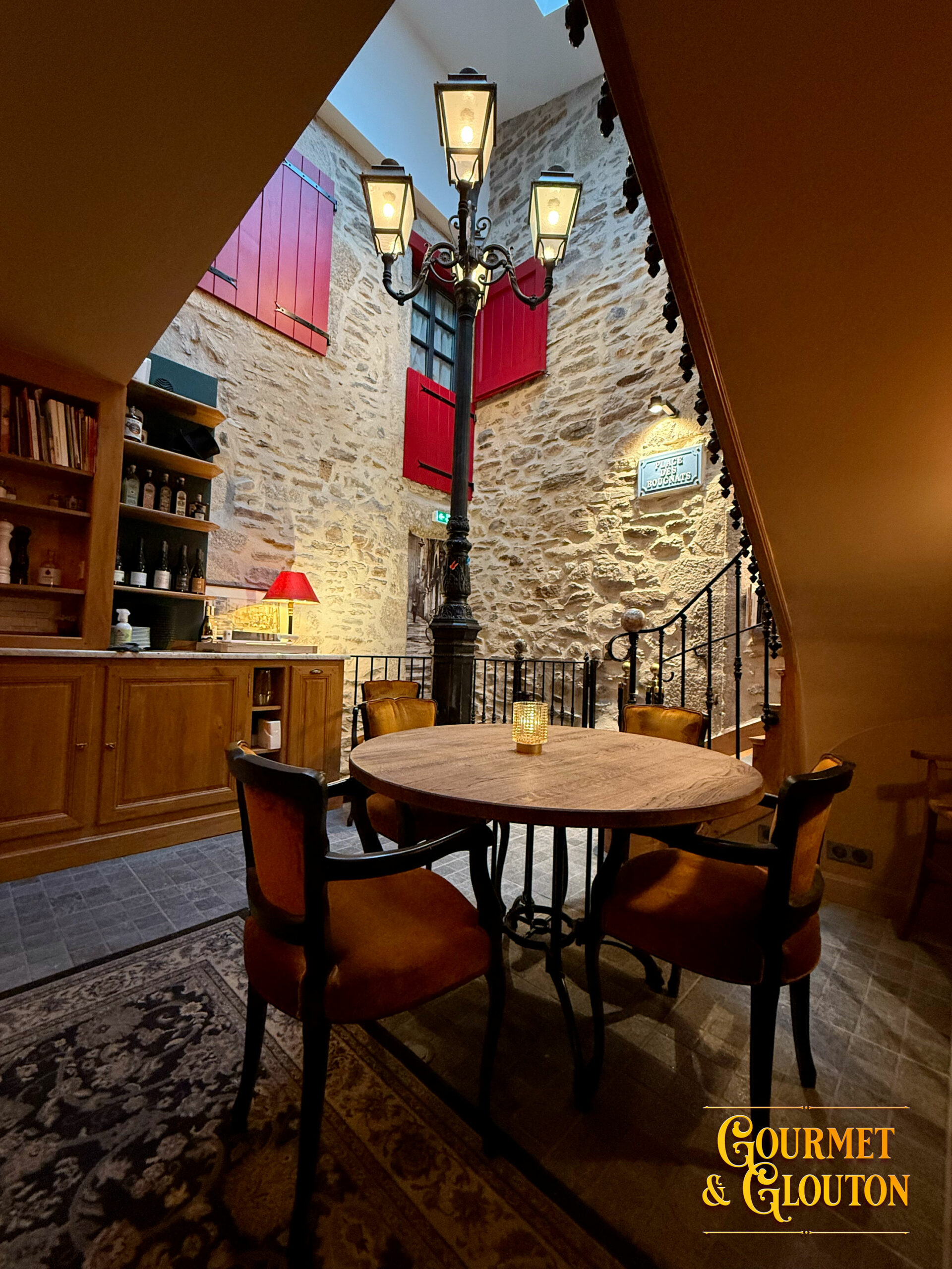 La salle chaleureuse du restaurant Gourmet & Glouton à Chaudes-Aigues.