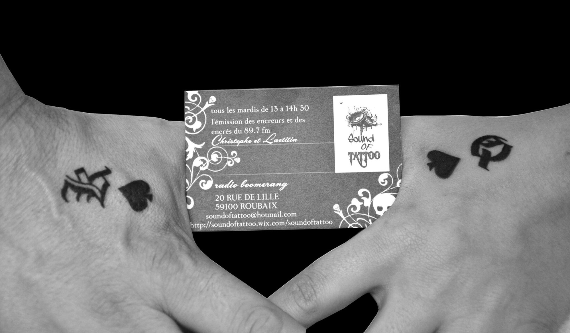 Chaque mardi, de 13h à 14h30, Sound of Tattoo investit les ondes de Radio Boomerang (89.7 FM), radio auto-définie comme « un média libre à l’écoute de la cité ». Son leitmotiv ? Parler exclusivement du tattoo, de l’encrage tous azimuts, de ses maîtres, de ses styles, de ses ratés et réussites.