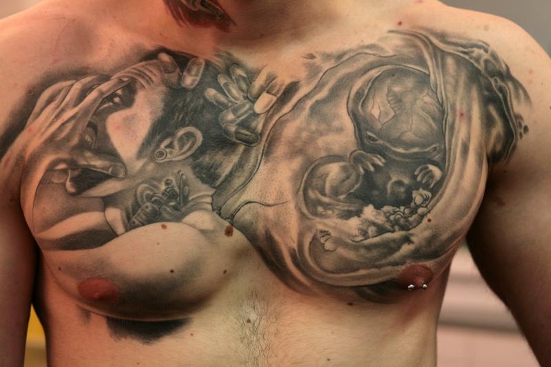 C’était vraiment un plaisir de réaliser le tatouage de Yannick, le thème bien sur, mais surtout la place qu’il me proposait et le format pour tatouer cette pièce.