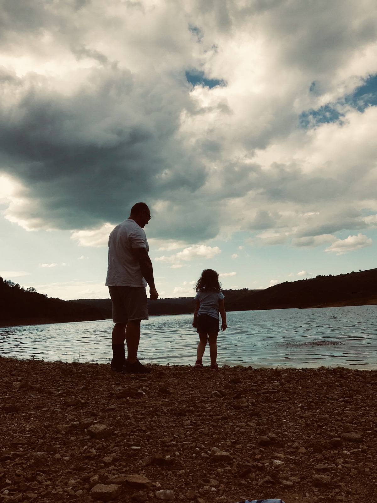 Loulou, la dernière de mes filles, lance des cailloux dans l’eau. Challenge de force, elle décide d’éprouver ses muscles. "Je suis forte, hein, papa ?"