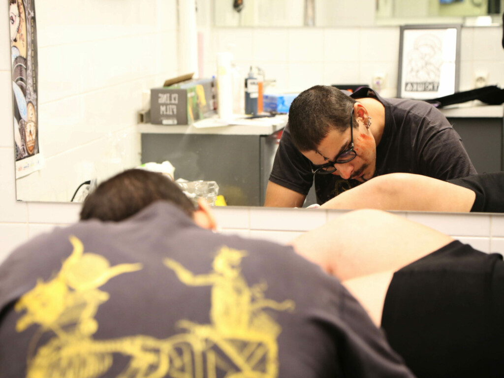 Le mercredi 31 octobre 2018, une ambiance funeste régnait au sein du studio de tatouage Graphicaderme d’Avignon, entre toiles d’araignées, cadavres exquis et effusions de sang… Retour en images sur un Halloween haut en hémoglobine.