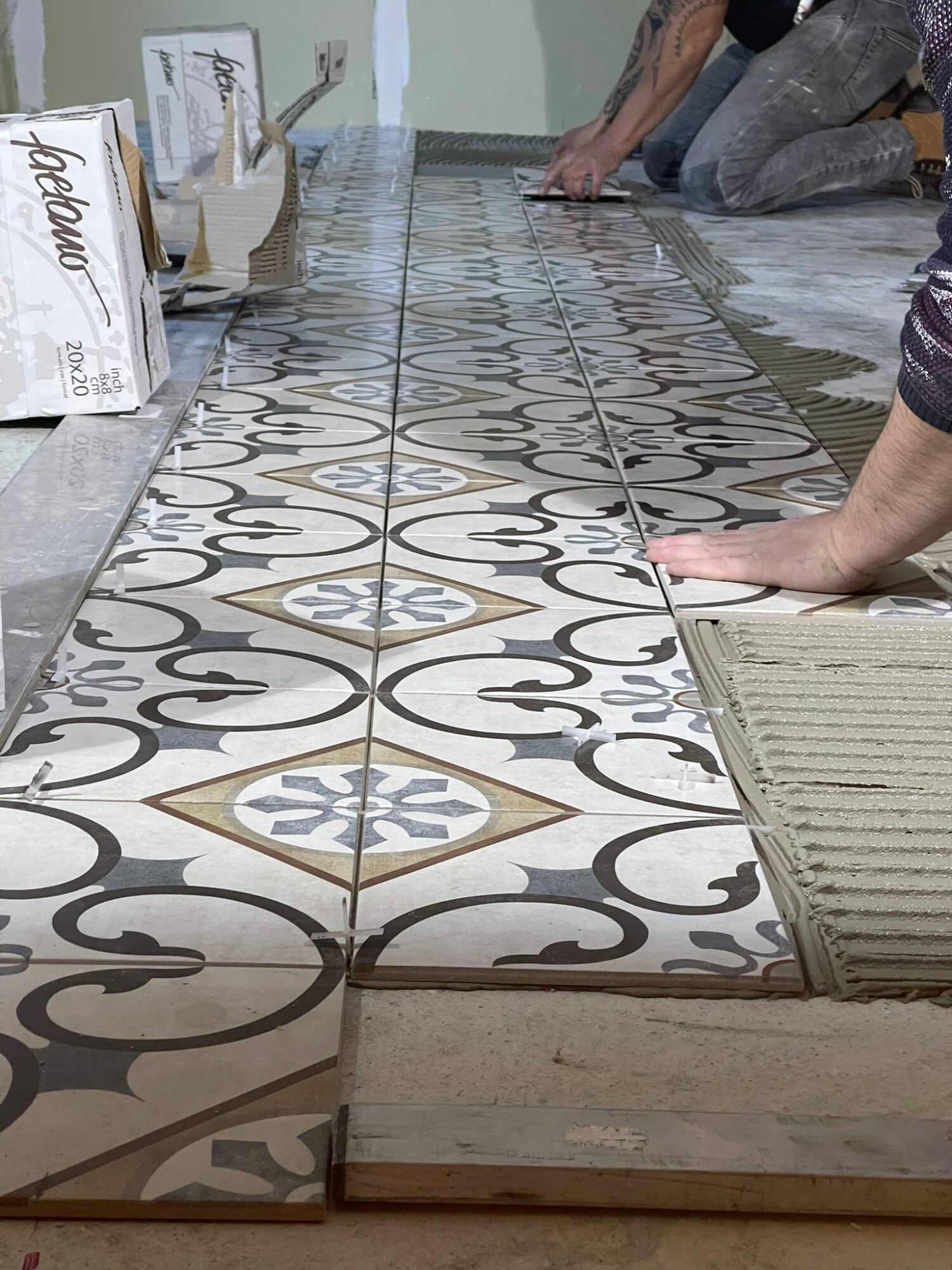Planifié depuis plusieurs mois, après avoir sélectionné l’ensemble du carrelage pour notre projet, arrive enfin le jour de la livraison. L’approvisionnement donc du chantier, mais surtout l’intervention des carreleurs.