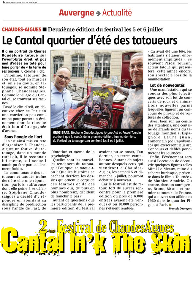 le journal la montagne nous a fait un beau papier sur le Festival du Tatouage de Chaudes-Aigues