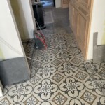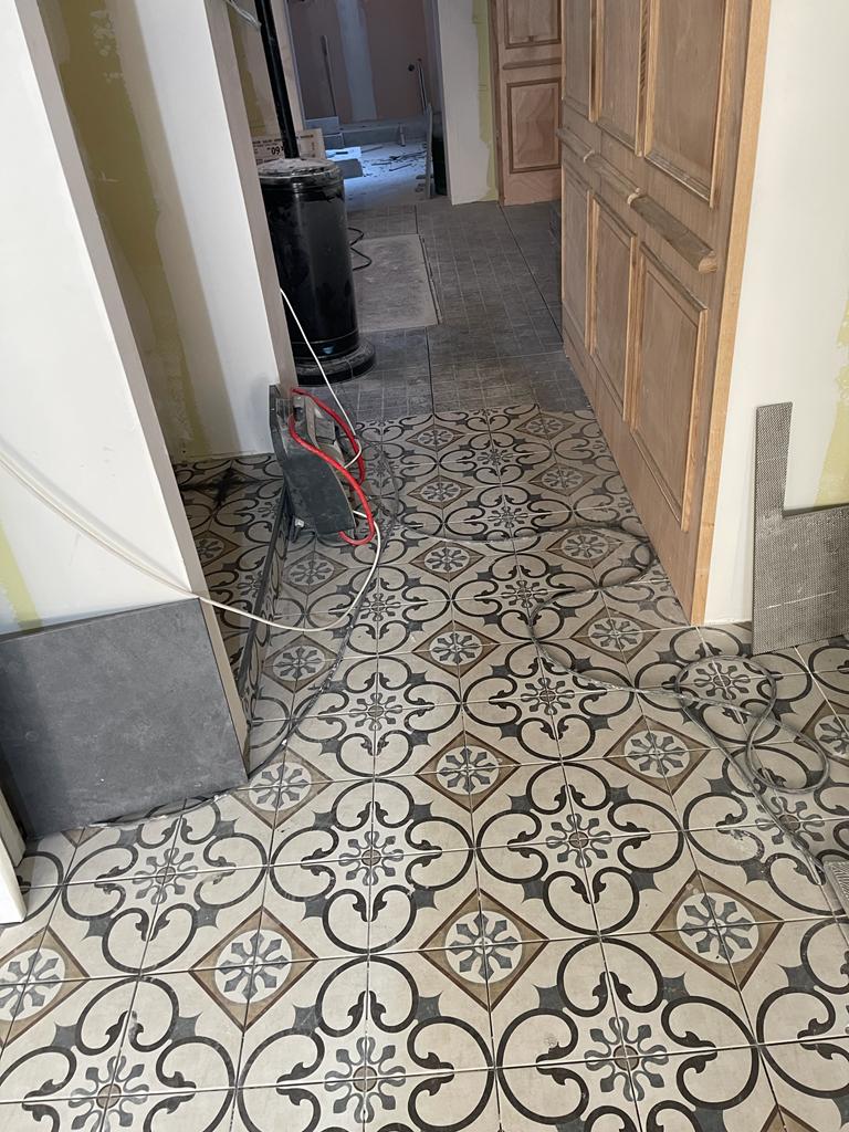 On avance bien : les carreleurs, méthodiquement, investissent les étages, et libèrent le rez-de-chaussée.
