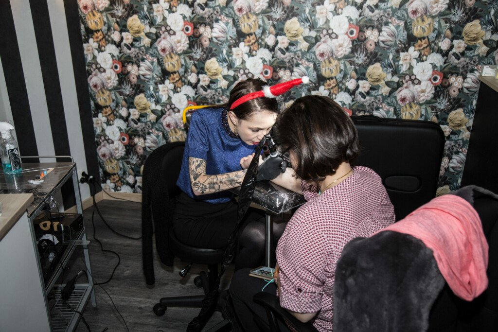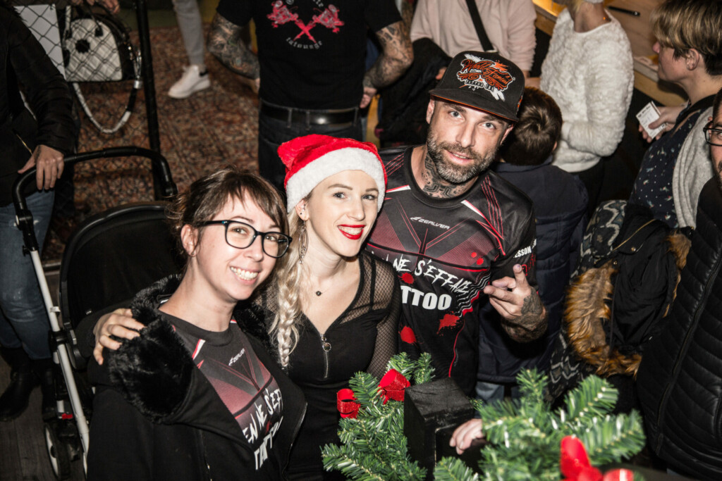 Du samedi 8 au dimanche 9 décembre 2018 étaient réunis dans cet espace des tatoueurs venus encrer pour une noble cause (Billy et Void de La Machine Infernale, Jess’Ink Tattoo, Syl’Tattoo, Gomette, Nat Rien ne S’efface, Aurel Roazink ou encore Yoann Menguy), et des curieux attirés par cet étrange cocktail d’épidermes gravés et d’esprit de Noël. Le résultat ? 5 000 € récoltés et reversés à One Small Step, l’association pour la recherche contre le syndrome de Prader-Willi. C’est ni plus ni moins le double que la somme de l’an passé, signe du succès croissant de l’opération.