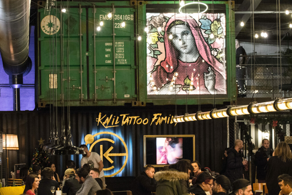 Le lieu choisi ? AVEC, tout nouveau concept accueillant depuis une poignée de mois un vaste restaurant conçu comme un dinner made in USA fort d’une French touch, autour duquel orbitent un barbier, un préparateur mécanique… et un salon de tatouage tenu par la Kalil Tattoo Family. Conteneurs et look industriel-chic forgent l’identité de ce nouveau havre de la modification corporelle au sein duquel piquent désormais Kalil, son fils Calvin et leur équipe de choc.
