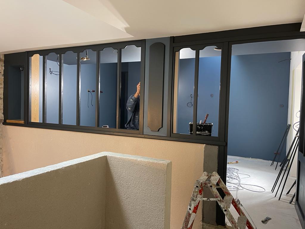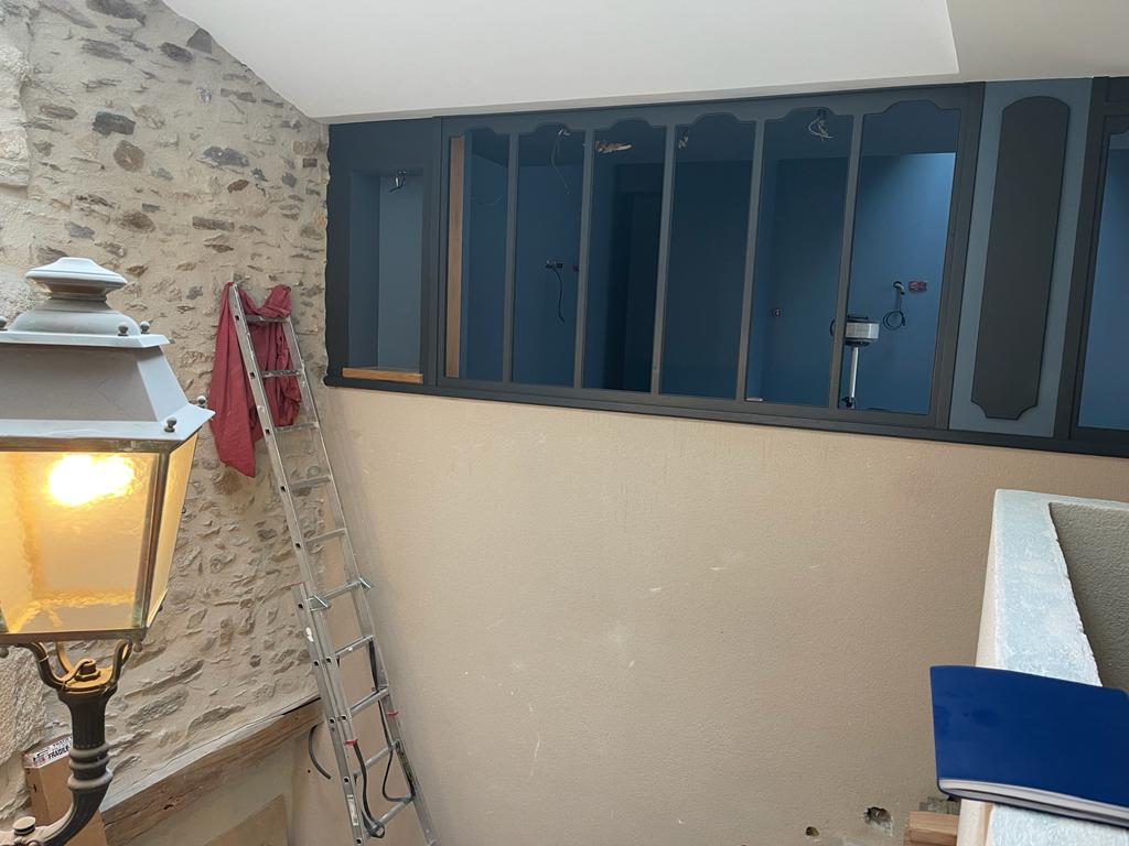 Voici donc quelques images de cette petite salle, qui s’inscrit dans le prolongement de la place des Bougnats. Le soin apporté par Cyrille Coumoul, le menuisier, à la réalisation de la verrière, permet de conserver cette ambiance très parisienne. Une petite niche installée sur l’extérieur laissera la place à un beau marbre, qui reprend la thématique des saints qui occupent nos rues au village, en fonction des différents quartiers.