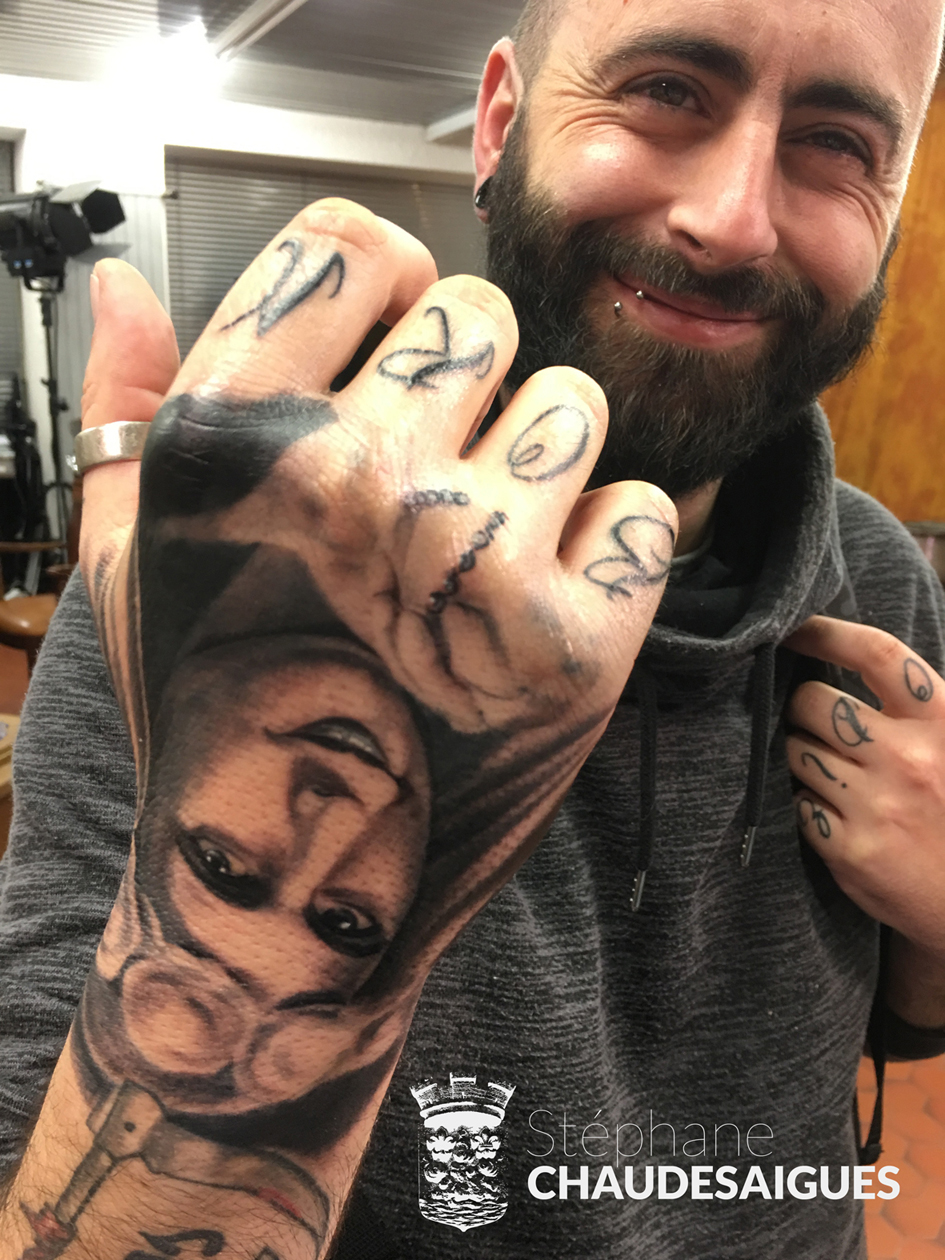Pas facile d'être pierceur et se faire tatouer les mains, les gants en latex, c'est moyen pour la cicatrisation.