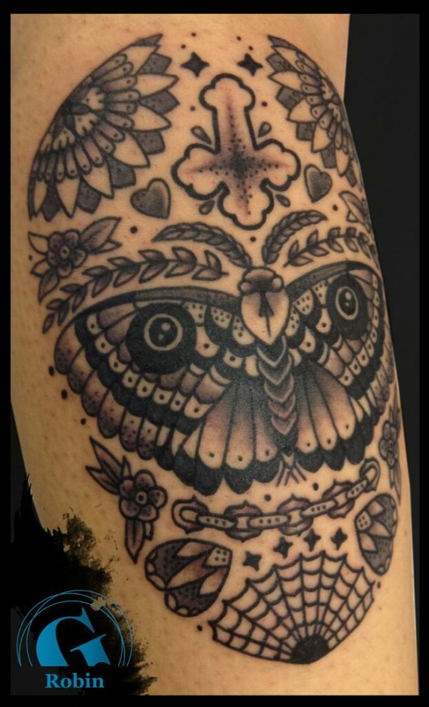 Originaire de Carpentras, dans la Vaucluse, licencié en Arts plastiques et Arts appliqués, adepte de dessin, d’Art nouveau, de traditionnel teinté de trash, Robin se livre lors de la première convention de tatouage d’Aix en Provence. Fraîchement arrivé à Graphicaderme, il parle de ses débuts dans l’infographie, dans le cinéma d’animation, mais également dans le prêt-à-porter de luxe à Paris. Pour, un beau jour, tout plaquer, et redescendre vers sa région d’origine pour y encrer.