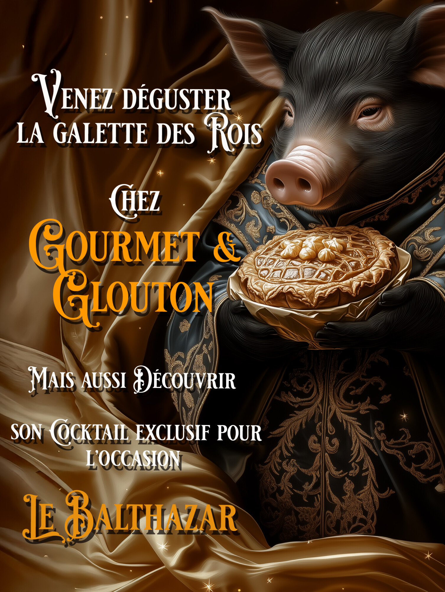 Chez Gourmet et Glouton, nous vous invitons à savourer notre délicieuse Galette des Rois, préparée par notre équipe.