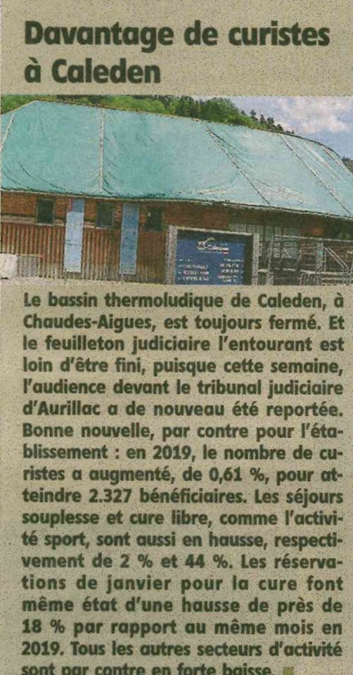 Le dimanche 2 février 2020, le journal La Montagne publiait un billet annonçant « davantage de curistes à Caleden » :