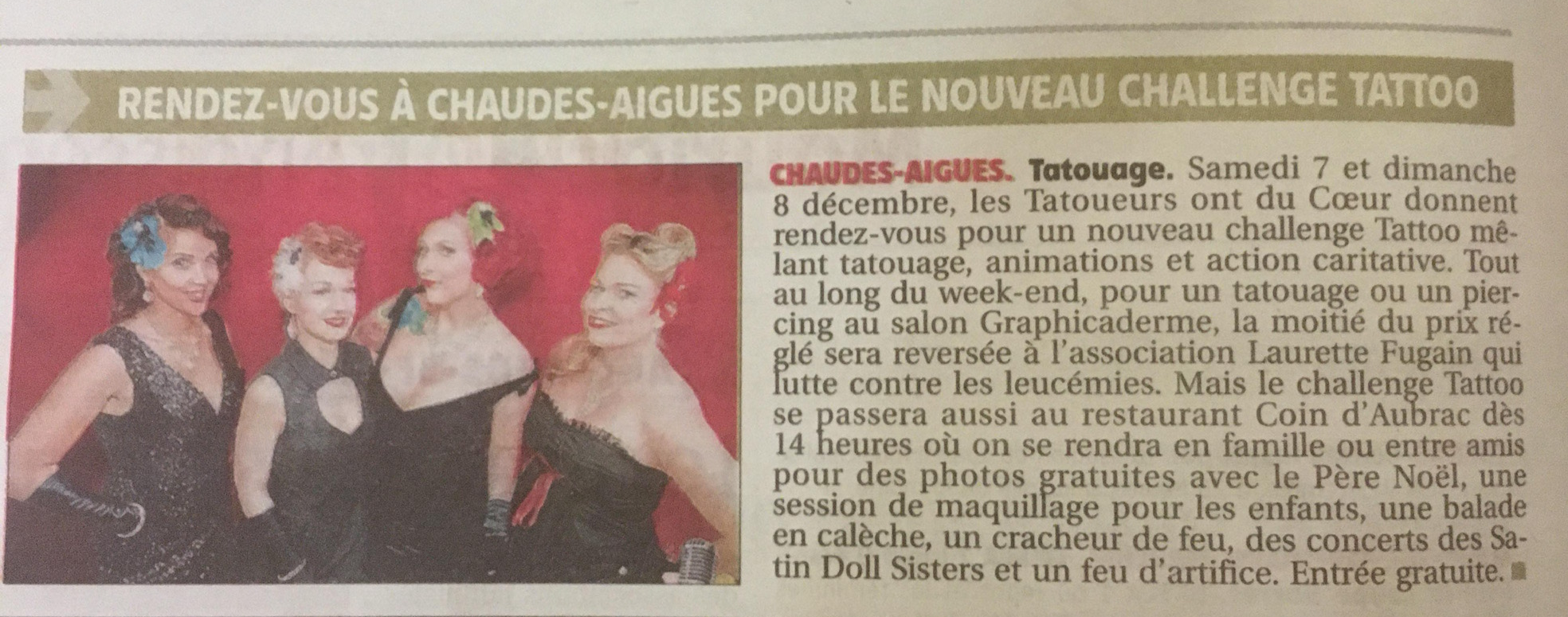 « Chaudes-Aigues. Tatouage. » Deux mots associés à nouveau par le journal La Montagne, à l’aube du Challenge Tattoo 2019 hébergé par notre village.