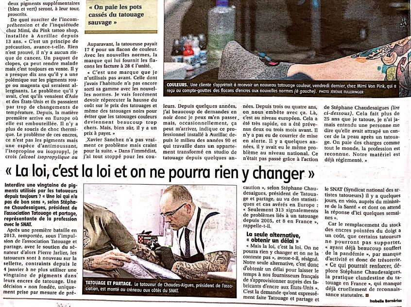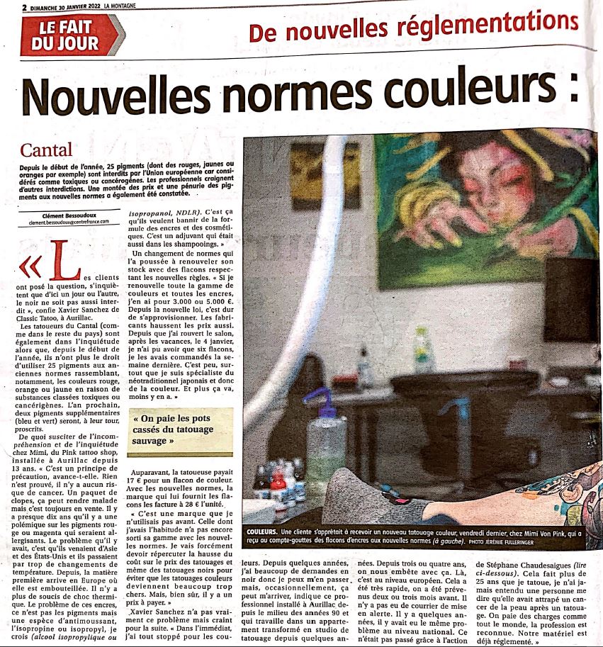 « Depuis le début de l'année [2022], 25 pigments (dont des rouges, jaunes ou oranges par exemple) sont interdits par l’Union européenne car considérés comme toxiques ou cancérogènes », rappelle La Montagne. « Les professionnels craignent d'autres interdictions », explique le journal local. « Une montée des prix et une pénurie des pigments aux nouvelles normes a également été constatée. »