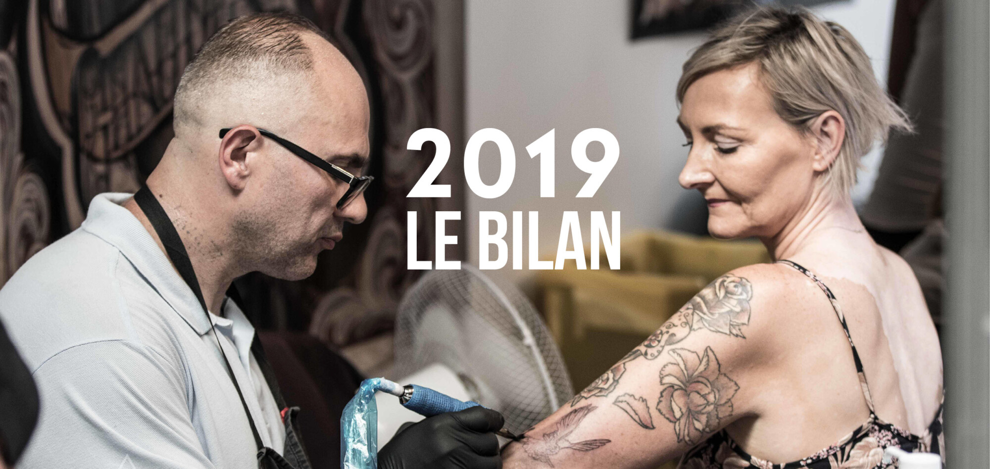 À Avignon comme à Chaudes-Aigues, 2019 fut une nouvelle année de tatouages réalisés avec une passion inébranlée depuis maintenant trois décennies. Parmi les motifs encrés au cours des douze derniers mois figurent un boxeur old school, un couple d’oiseaux agrémenté d’une composition florale, un molosse aux traits de ministre britannique, ou encore un portrait qui s’est inscrit dans un difficile travail de deuil.