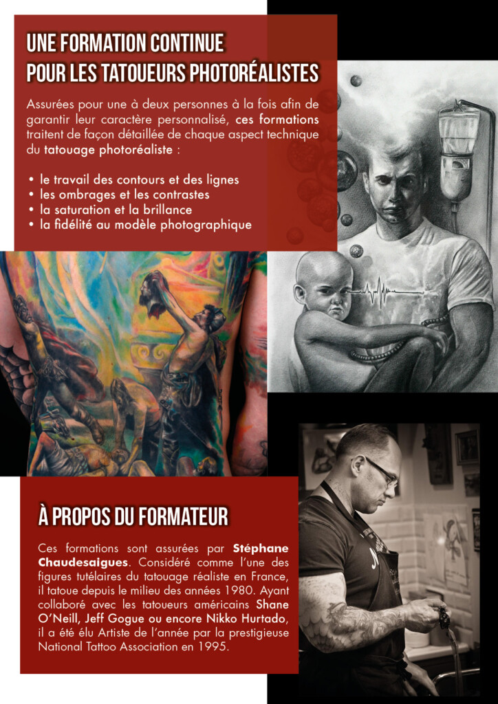 Le débat sur la formation initiale des aspirants tatoueurs divise une partie de la profession, entre les partisans d’écoles de tatouage gratuites sanctionnées par un diplôme d’État, et ceux attachés à l’ancestrale relation maître-apprenti. Mais quid de la formation continue ? Quelle place, dans pareil contexte, pour les professionnels du tattoo souhaitant améliorer leur technique ou se former à un pan de l’encrage qui leur est inconnu ?