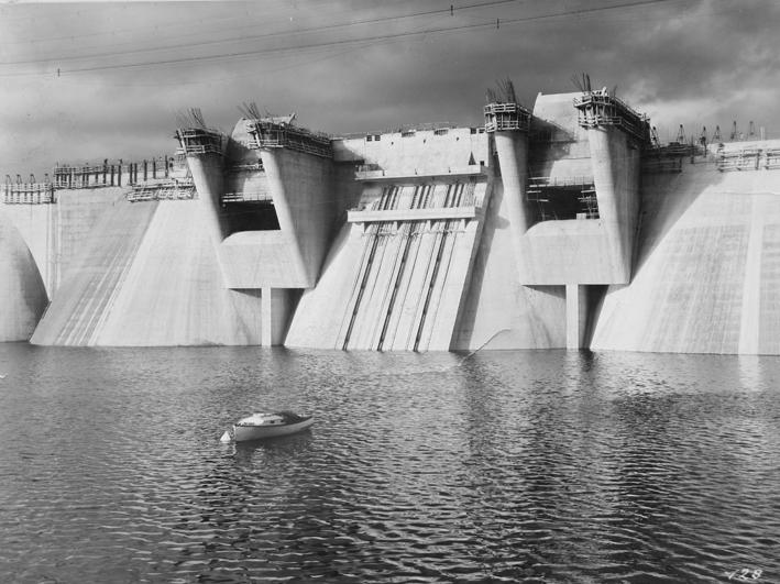 Aujourd’hui, l’histoire qui lie le nom Chaudesaigues au village de Mallet ne se découvre plus que dans les livres. Pourquoi ? Parce que Mallet a été englouti sous les eaux du barrage de Grandval. En 1955, alors que le besoin en énergie électrique connait un spectaculaire essor, les travaux de construction du barrage débutent. Mis en eau en 1959, il est officiellement en service l’année suivante. Cet édifice va aboutir à la création, dans les gorges du Bex, d’une retenue d’une surface de quelques 1 100 hectares. C’est elle qui aura raison de Mallet, noyée et invisible pour celles et ceux qui ne savent où chercher.