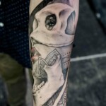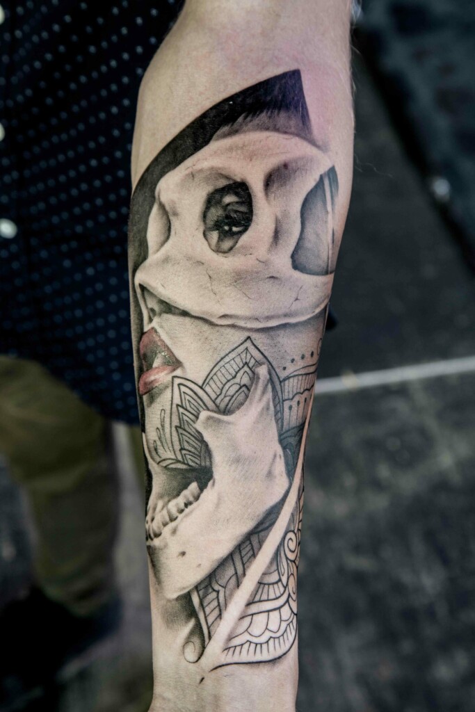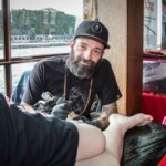 Quel meilleur paysage, dès lors, pour rameuter sur les péniches de la Ville-Lumière une bande de joyeux zouaves réunis par la passion du tatouage ? Au Paris Tattoo Ink, j’ai eu le plaisir de tatouer aux côtés du collectif Graphicaderme – Barbara Rosendo, Steven Chaudesaigues, et Pierre-Gilles Romieu, multi-récompensé pendant les concours – ainsi qu’en compagnie de quelques membres de Tatouage & Partage : Kalil et Calvin Moktar, Patrick Fauconnier, Goran Ivic…