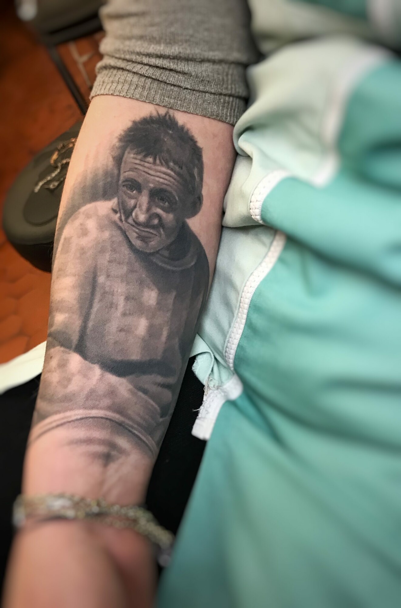 Le tatouage est cicatrisé à présent. Forcément et comme souvent, le document de référence n’était pas au top ; mais le résultat dans le traitement me plaît, et nous retrouvons un peu de l’âme du papa de ma cliente. Et finalement, c’est tout ce qui compte…