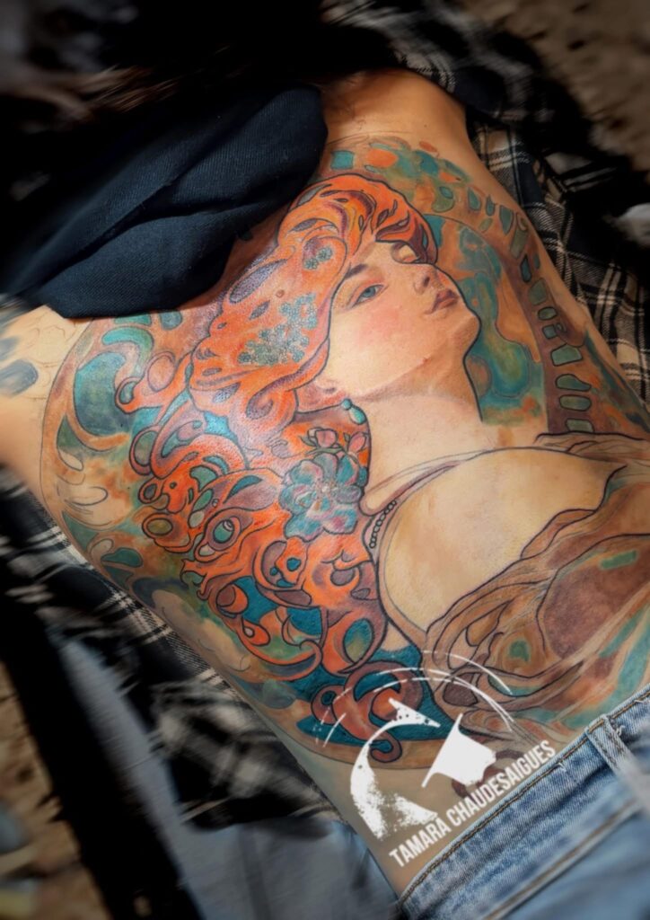 Tamara n’a pas plongé immédiatement. Elle a pris le temps. Elle a observé, dessiné, nourri son regard avant de s’engager professionnellement. Quand elle a choisi de tatouer, ce n’était ni par mimétisme ni par pression. C’était une décision.
